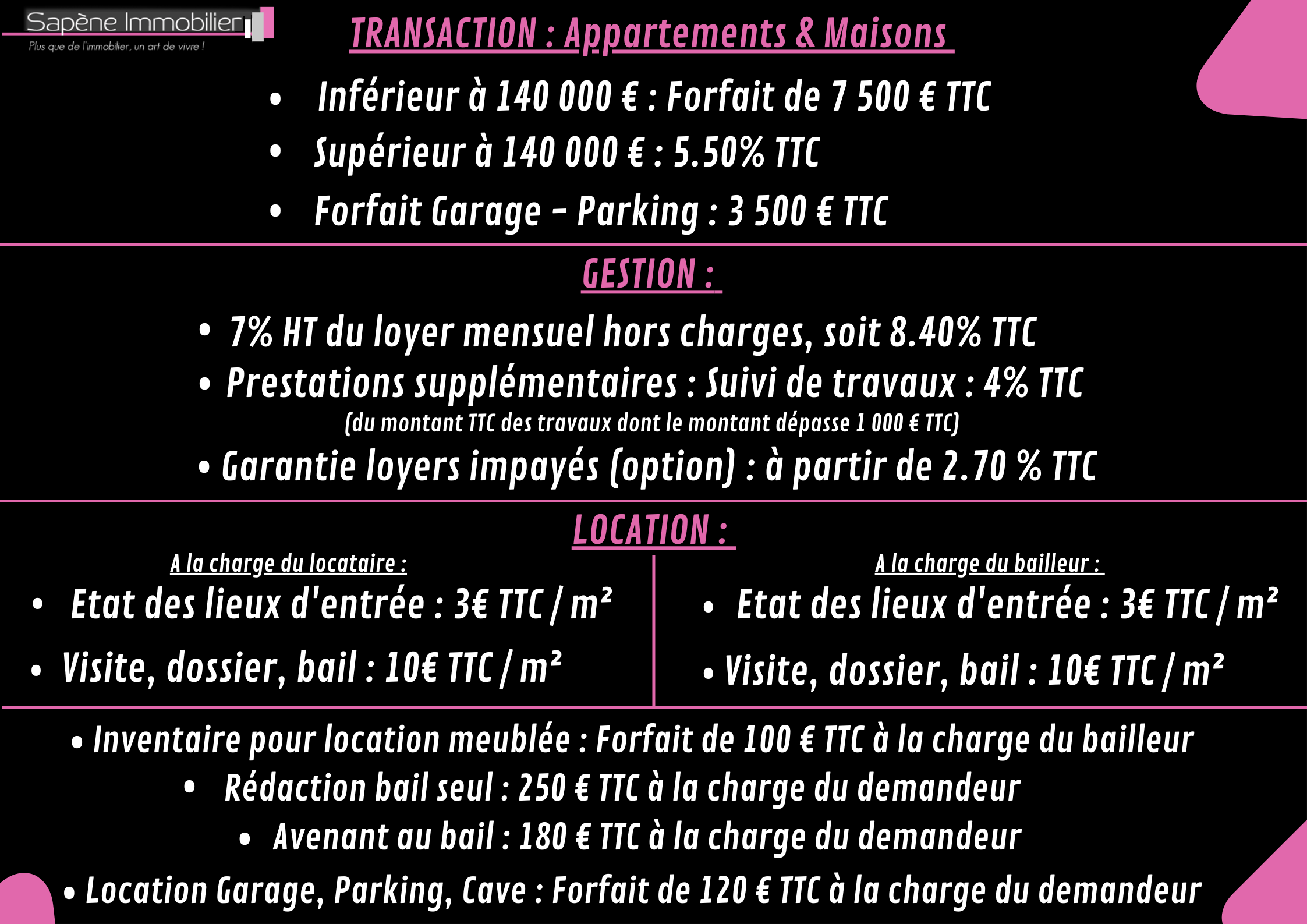 Sapène immobilier s’efforce de fournir sur le site www.sapene-immobilier.com des informations aussi précises que possible. Toutefois, il ne pourra être tenue responsable des omissions, des inexactitudes et des carences dans la mise à jour, qu’elles soient de son fait ou du fait des tiers partenaires qui lui fournissent ces informations.